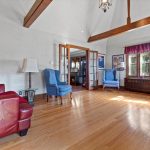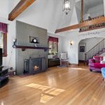 Impressive high beamed cathedral ceiling. Loft over looking living room with wood burning fireplace.