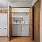 West exposure. Central air. Electric baseboard heat. Kitchen has laminate floor, pantry, and an abundance of cabinets. Laundry is hidden in the kitchen in its own full size closet. Unit is ready for your personal touch.
