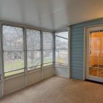 3 season room overlooks park like setting that has a beautiful gazebo.